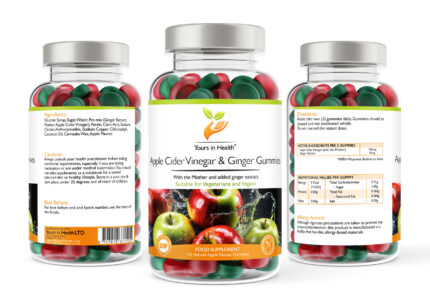 • Delicious natural apple-flavoured Apple Cider Vinegar gummies with ginger extract.