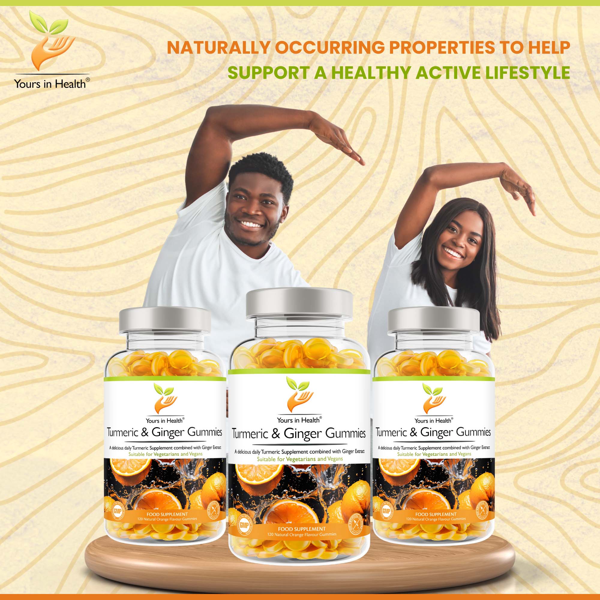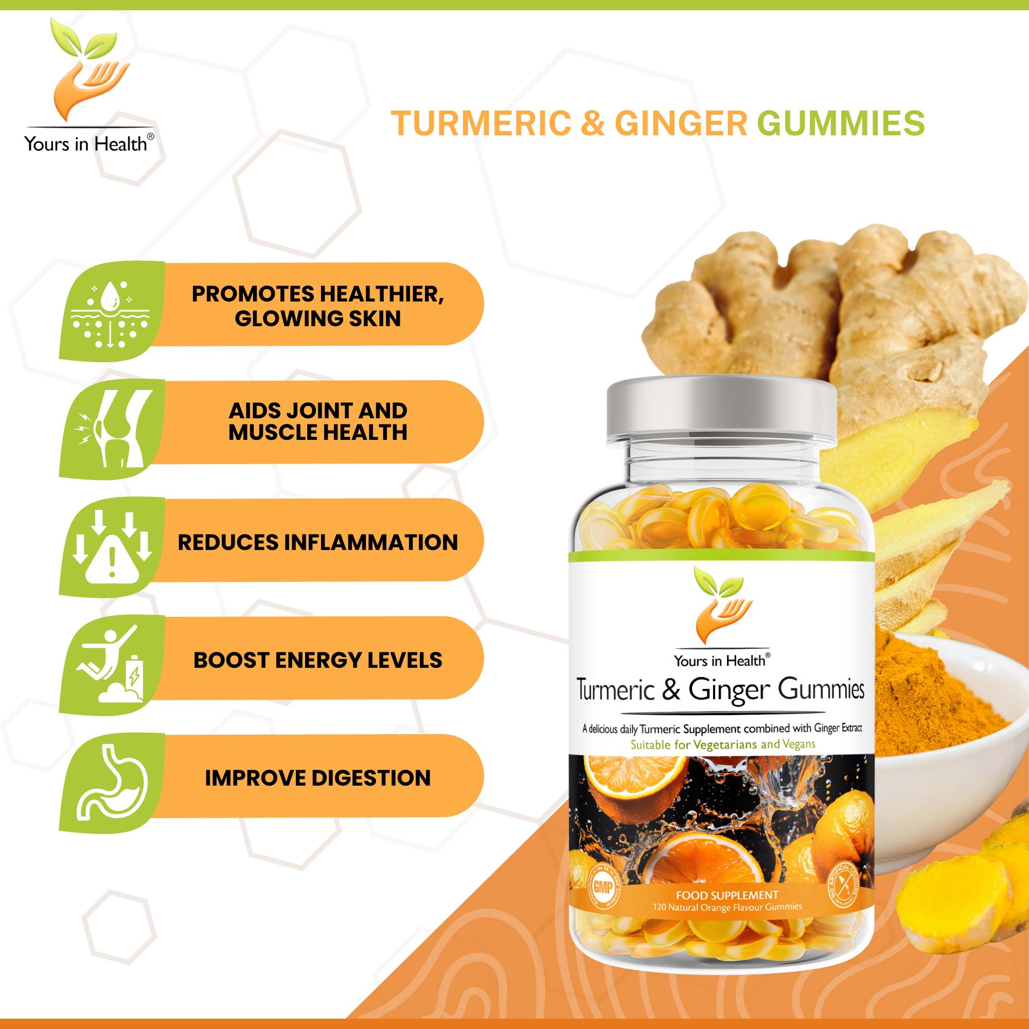 • Gummy supplement with blend of Turmeric & Ginger Extract.