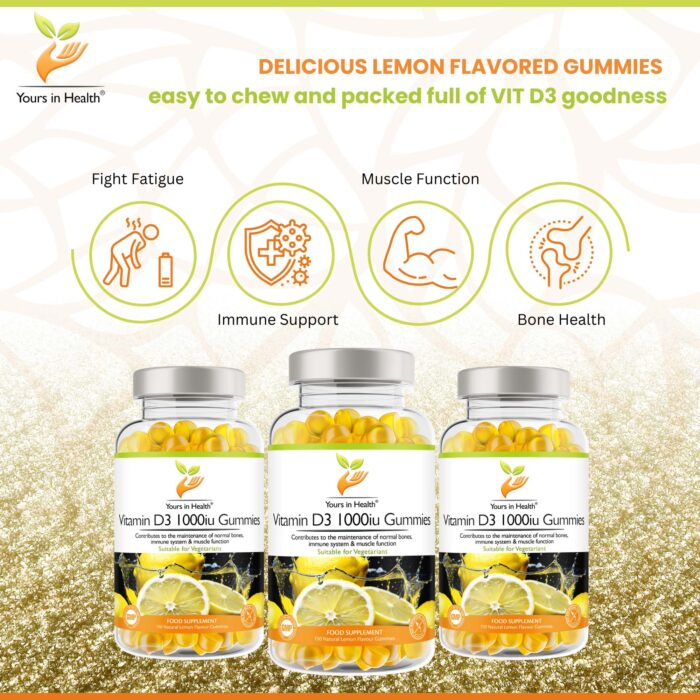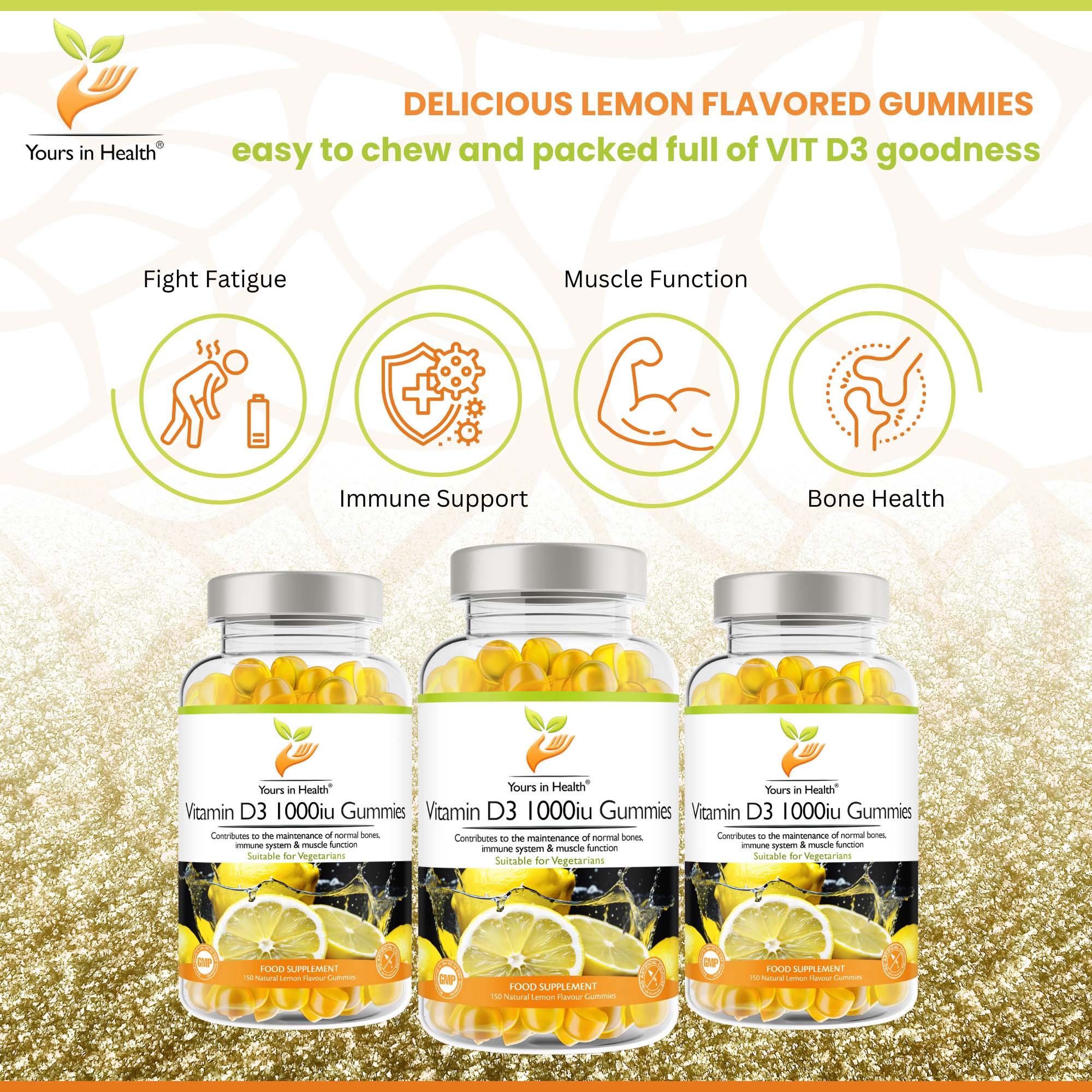 Our gummies are made with high-quality ingredients and are a convenient and easy way to get your daily dose of vitamin D. The natural lemon flavour adds a refreshing taste to the gummies, making them a perfect on-the-go snack that you and your family will love.