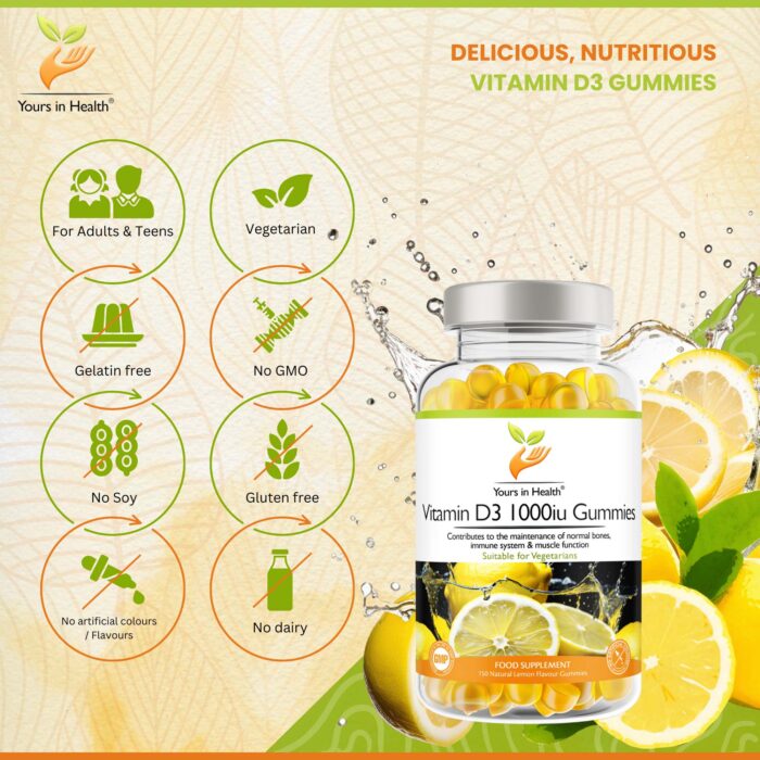 • 1000IU/25μg of vitamin D3 in each gummy.