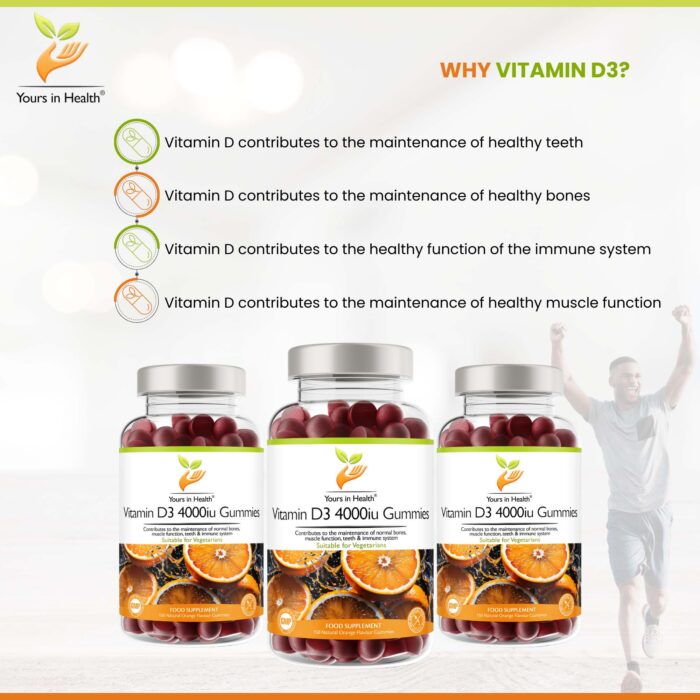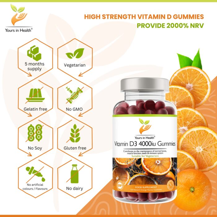 • High-strength 4000IU/100μg of vitamin D3 in each gummy.